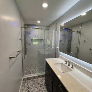 Tile Sanchez is a leading bathroom remodeling company specializing in high-quality floor installations, including ceramic, laminate, marble, and more. With years of experience, we handle everything from demolition and design to full execution of bathroom renovations. Our expertise extends to framing, drywall installation, plumbing, and electrical work, allowing us to provide a complete, integrated service that transforms your space efficiently and beautifully.